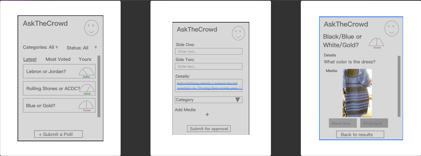 Some features changed from the original wireframes, which is to be expected. For instance, I realized I could gamify the experience by displaying the poll results once a user voted. Fortunately, getting alignment between Product, Engineering, and Design was seamless. Hello, consensus, party of one.